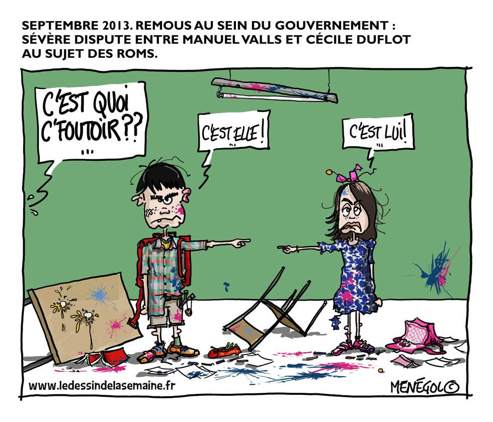 Manuel Valls a déclenché la semaine dernière une intense polémique, au sein de la majorité, en niant la capacité d’intégration d’une majorité de Roms -- des propos encore assumés dimanche malgré les critiques. Lundi, le ministre de l’Intérieur, qui a jugé « insupportables » les critiques de sa collègue du gouvernement Cécile Duflot à propos de sa fermeté sur les Roms , n’a évoqué la question qu’en deux phrases devant les responsables policiers. « Ces démantèlements (de camps illégaux) sont un impératif pour lutter contre les phénomènes délinquants et mafieux, les trafics, d’exploitation de la misère qui s’y greffe ».