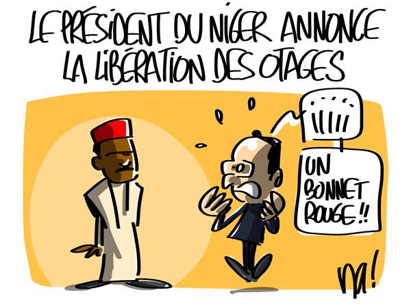Thierry Dol, Daniel Larribe, Pierre Legrand et Marc Féret ont l'air bien plus détendus que mardi soir, quand ils étaient arrivés à l'aéroport de Niamey, juste après leur libération, a rapporté un correspondant de l'AFP.