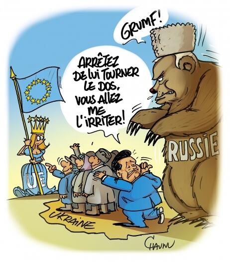 Le président russe Vladimir Poutine, qui a joué un rôle décisif pour dissuader Kiev de signer l’accord avec l’UE, a lui aussi fustigé lundi les manifestations en Ukraine, « préparées de l’extérieur » et qui « ressemblent plus à un pogrom qu’à une révolution ».